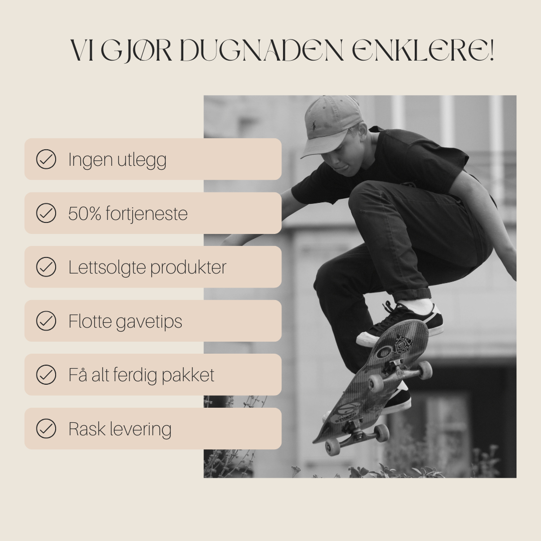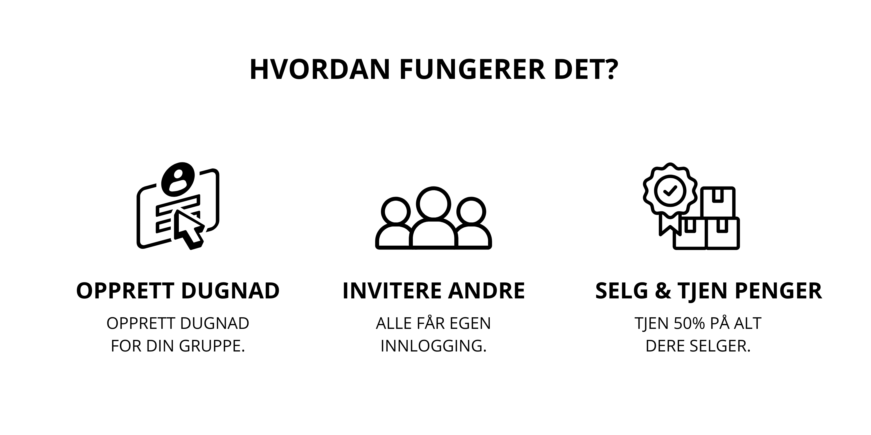 - Selg produktene: Når dugnaden er over, sender vi alle bestillinger til avtalt adresse.